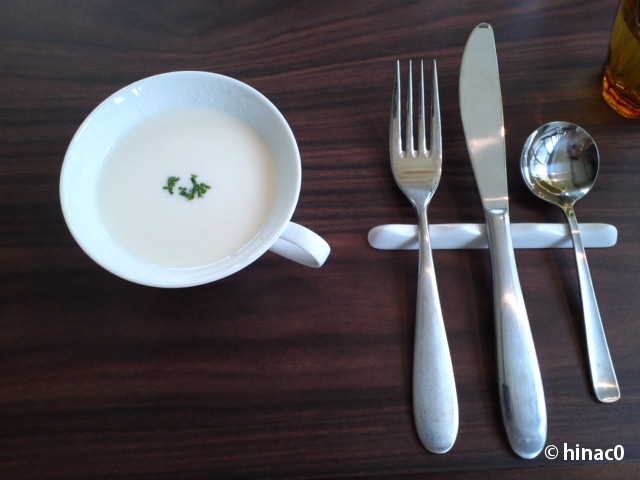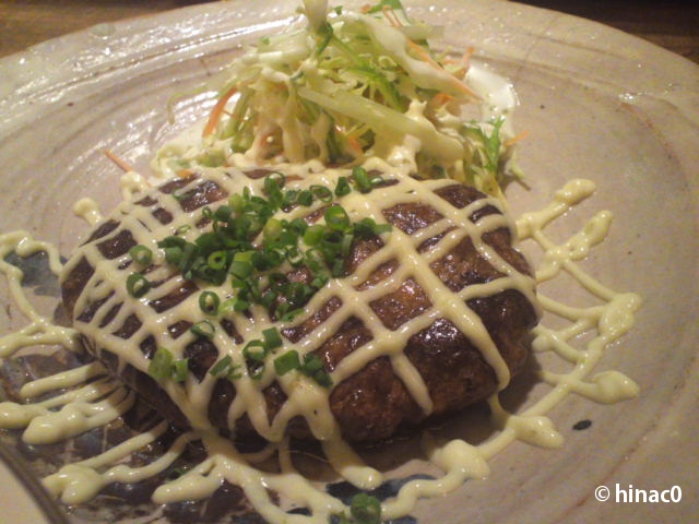 ハンバーグはわさびマヨネーズ味。ご飯半分おかわり頼んだら、普通の茶碗に一杯出てきました。食べ過ぎました…。