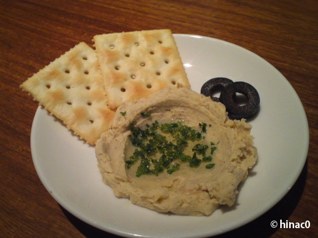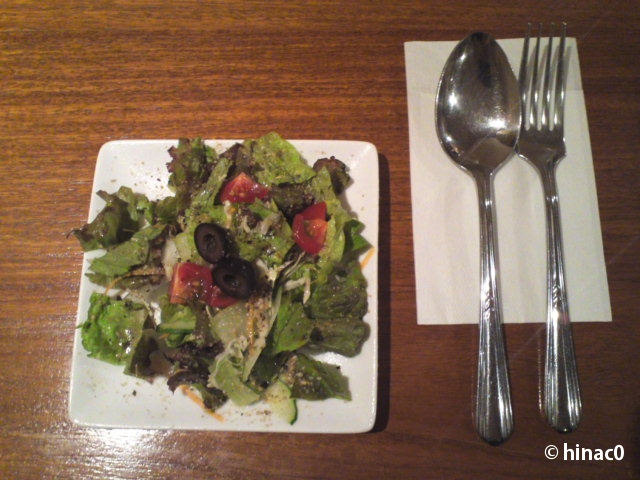 まずサラダ。小さめのお皿ですが、胡麻やナッツのすりおろしたものが振りかけられていて香ばしかったです。前菜はパテが出てきて、ワインが欲しくなりました。一人なので自粛。