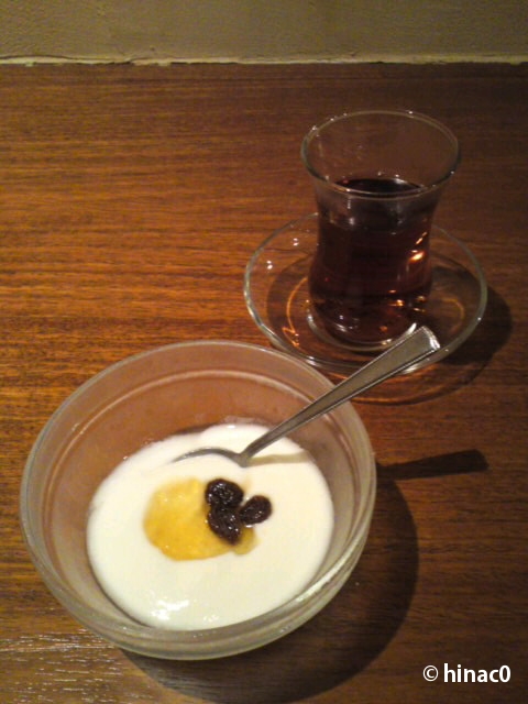 食後にはヨーグルトと紅茶…これをカシュクではチャイと呼ぶようです。イメージしていたスパイスミルクティーとは違いましたが、すっきりしてよかったです。なくなりそうになると店員さんがポットを持って注ぎにきてくれます。ちょこっとワインとディナーコースで、ゆっくり過ごしたいお店だと思いました。誰か誘ってみようかな。