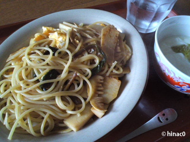 夕飯には物足りなかったので、家に帰って早速筍でおつまみを作ってみました。梅干しとおかかで和えた、さっぱりヘルシーなおつまみです。梅村のママからもらったぬか漬けと一緒にいただきました。旬の筍は香りがよく、とてもおいしかったです。