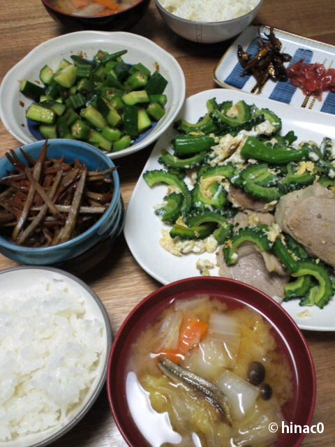 ベランダで育てているししとう、水やり以外は放っていましたが、たわわに実りました。今日は13本収穫。立派なゴーヤが手に入ったので、ししとうも入れてチャンプルにしました。