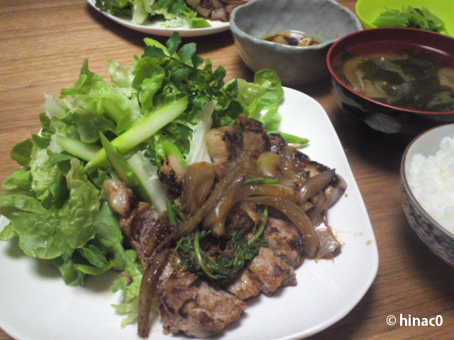たっぷりクレソンにレタスを食べるには何だろう?と考えた結果、こうなりました。生姜焼きはいつもなら豚バラか薄切りなんですが、今日は厚切りな気分。脂身と筋に切り込みを入れて、すりおろした玉ねぎ、生姜に調味料を入れて、お肉をつけておきます。あとは肉だけ焼いて、後からタレを煮詰めて。新たまがみずみずしくて、薄味になってしまったのが残念かな。まぁでも、いい味でした。