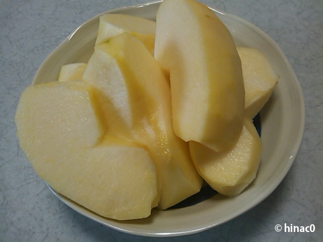 食後にリンゴ。しなのゴールドは大きくてお腹いっぱい。洋梨のような甘い香り、歯触りは軽いのにみずみずしく、甘くておいしかったです。