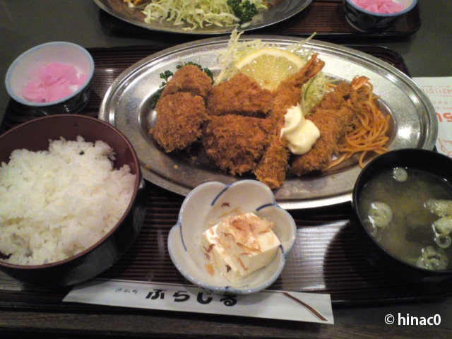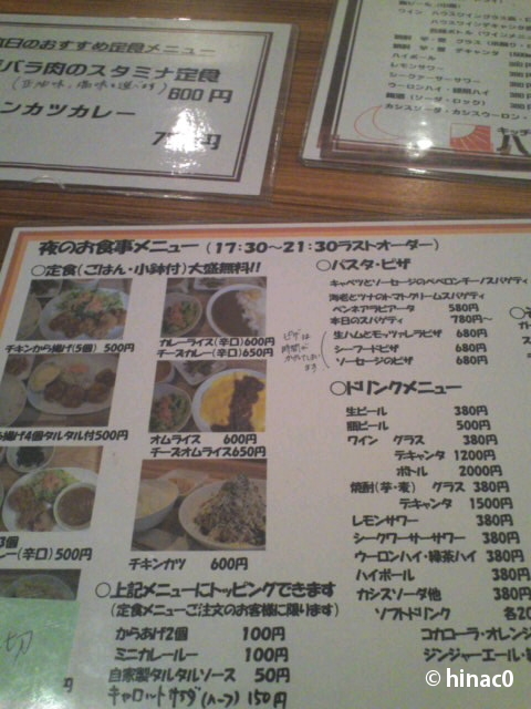一周して見つからなくてあきらめかけていたら、灯台もと暗し的な位置に「お食事処」の看板を発見。夜の「お食事処」はあてにならないことが多いので恐る恐る近寄ってみると、なんとも素敵な佇まい!古臭いキッチン(誉め言葉)!揚げ物中心の洋食屋でした。
