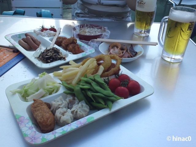 食べ物もセルフ。唐揚げ、フラポテ、オニオンリング、枝豆…と、よくあるおつまみが山盛りです。味もまぁこんなもんかという感じですが、晴れた暑い日に外でビールは何よりのご馳走です。久しぶりの再会で話も盛り上がり、夜は更けていきました。この夏はビアガーデン巡りもいいなぁ。