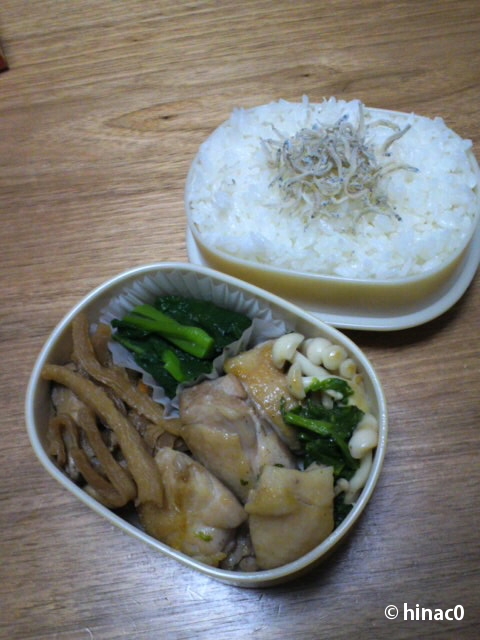 あとは詰めただけ。ご飯にのせたじゃこは、呼子土産です。