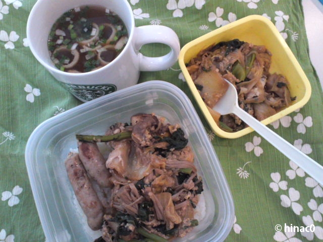 深いタッパーにご飯を詰めて、職場で丼にしました。