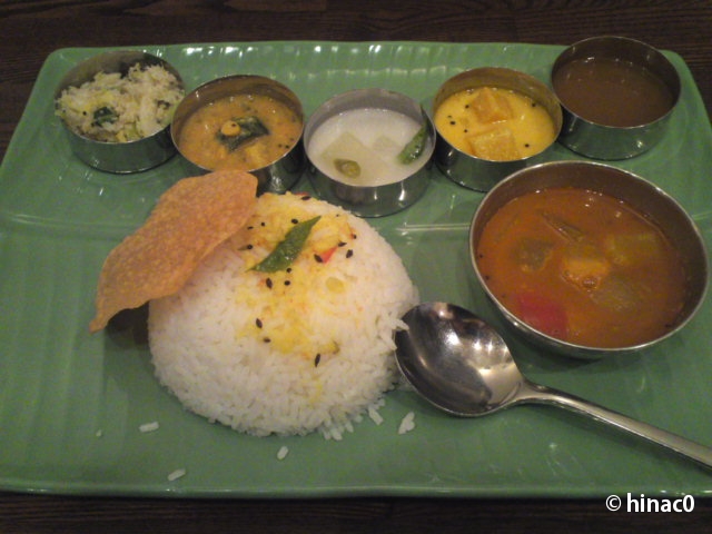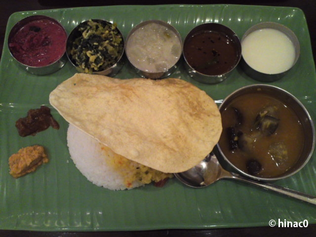 ケララの風のランチは「ミールス」という南インドの定食のみ。おかずは日替わりです。すべておかわりができて1000円、食後にチャイかコーヒーがつきます。