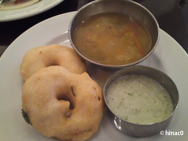 南インド料理は初めてというみなさんでしたが、チャレンジ精神旺盛な人たちばっかりなので、色々頼みました。とりあえずワダ。ウップマ、ウタパム、マサラオムレツ。ワダはドーナツのようですが豆の粉を使った塩気のあるお料理。サンバルとチャトニもついて、軽食と呼ぶのにふさわしいメニューです。マサラオムレツはビールが合いそうでしたが、これから銭湯に行く予定だったので自粛。チャイを二杯いただいて、閉店まで話し込みました。