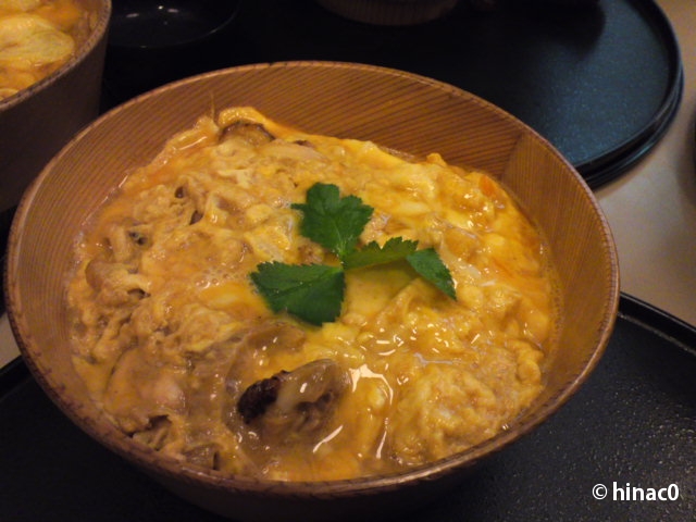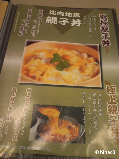 「せっかくだから、ここは究極を!!」とオススメされ、一同究極親子丼をオーダー。お肉も卵も比内地鶏という贅沢な逸品です。曲げわっぱの丼は、親子丼の邪魔をしない程度にほのかに香って素敵。卵はとろとろ、鶏は炙ってあり香ばしく、歯ごたえがありました。味付けが少し濃くて、せっかくの比内地鶏の味が消えてしまっている感じがしたのが残念です。親子丼としては、おいしい丼でした。