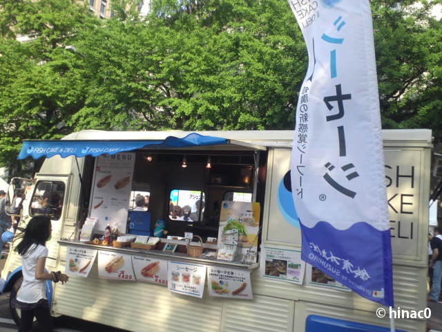 両脇にテントが立てられ、なかなか賑わっています。地産地消を目指すイベントですが、今年は岩手や福島のブースもありました。福島は会津の米や野菜、加工食品が並んでいて、今朝3時に収穫して積んできたと言っていました。岩手も盛岡から夜中にたってきたようで、お疲れさまですと一言。行者にんにくの醤油漬けやリンゴの加工品を売っていましたが、これがだいぶ値が張って。姫たけなんか5本で500円…!いや、関東じゃ滅多に食べられない、おいしい山菜です。田舎が盛岡の人に当たったのが悪かった。ごめんねにーちゃん、私は田舎から送ってもらうよ。。