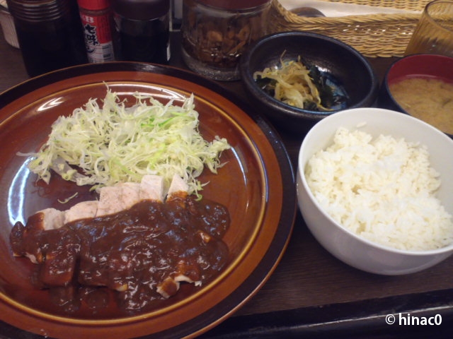 今日の日替わりは鶏むね肉のカレーソースかけ。カレーソースって結局は、カレーライスにかけるカレーです。なので、具とルーが逆転したカレーを別盛りにした感じ?ご飯もカレー用の硬めご飯だったので、なんだか不思議でした(笑) それでも定食形式でワンコインだから、いいよね。