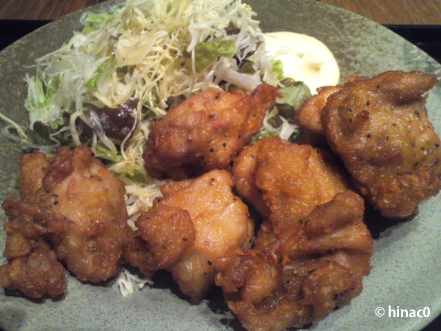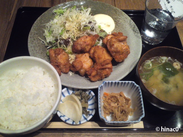 今日は初志貫徹で唐揚げ定食。胡椒の効いた薄い衣で、フライドチキンに近い感じですが、絶妙な火の通り具合で、ジューシーでご飯が進む進む。少ないわけじゃなかったのに、ご飯おかわりしちゃいましたー。今日も食べ過ぎだー。