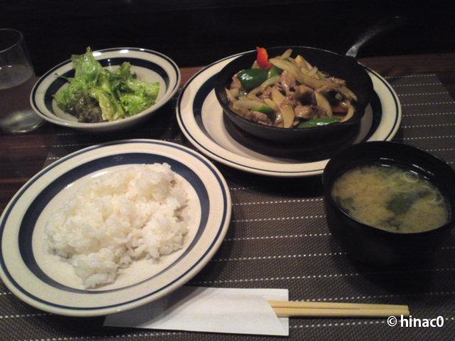ランチメニューは2000円を越えるステーキもありますが、1000円前後のものは和洋折衷でした。ステーキ屋だから牛肉かなと思いオイスターソース炒めを選びましたが、熱々でおいしかった、ということ以外は特別な感じはありません。ランチはランチと割り切っているのだと思います。メニューの中では、つみれ鍋がおいしそうでした。