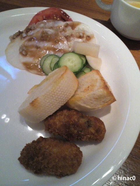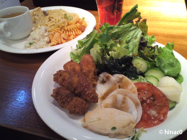 さすがオイスターバーなだけあって、カキフライは小粒でもおいしい。パスタやリゾットも味がよかったです。でも、私にはパスタとフライの組み合わせは重たかったです。サラダはサニーレタスが中心、ドレッシングは三種類ありました。前菜はバルサミコが使われていて、他の料理の引き締め役にもいい感じでした。