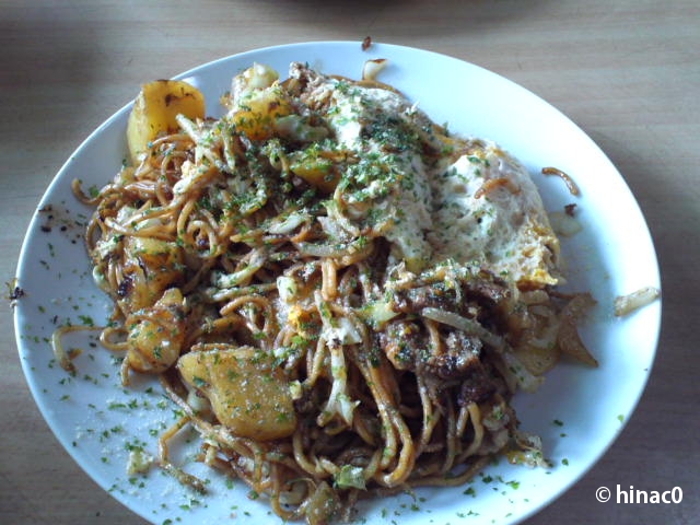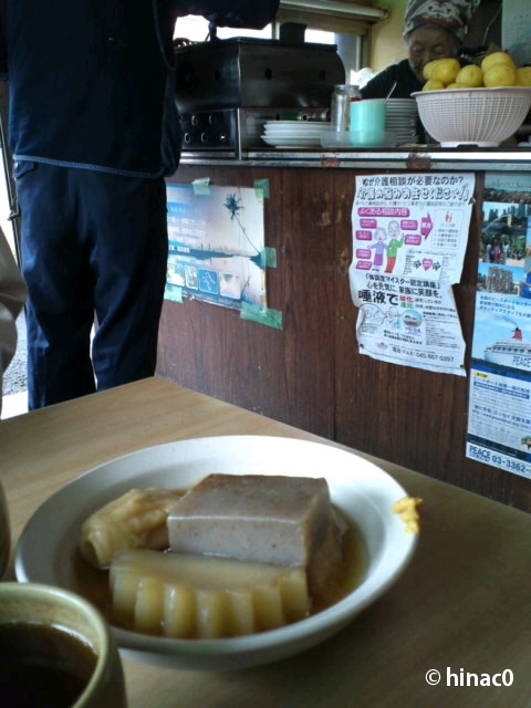 テレビかなんかで聞いたことのある「下町のもんじゃ焼き」「駄菓子屋の焼きそば」がここにあるようなお店で、焼きそばは250円から。涼しくなるとおでん鍋が出て、これがまたおいしいのです。おじいさんが亡くなったそうでお休みされていましたが、お店は無事に再開し、おやつ時にも関わらず、お客さんがぞろぞろやってきました。入口の暖簾には「常連一同」の文字が。長く愛され続けているお店です。