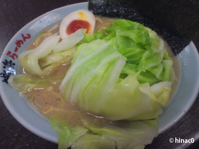 キャベツをトッピングしたら、期待以上にキャベツが乗っかって出てきました♪ スープにつけた海苔でご飯を巻いて食べるとおいしいんだけど、さすがに一人では食べ切れません。やー、でも久々の家系、満足! ごちそうさまでした。