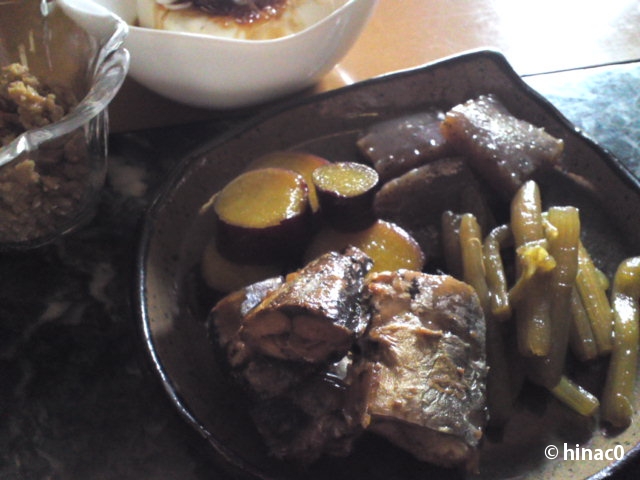 いろいろ買った。袋煮は鮭入り。アングルが悪いな…。