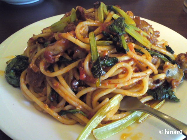 たっぷりの油で炒めた焼きパスタは想像通り、B級グルメを名乗るだけある濃さ、ボリュームもまずまずで、他のお店の大盛りくらいです。名古屋のあんかけスパと同じ太さ2.2mmのパスタがよく合います。食べたかったトマト系が激辛メニューで、「激辛店の激辛じゃないから大丈夫かな…」と、オーダー。しかし!鷹の爪一握り入っているであろうこのパスタ、激辛は間違いありませんでした。食べきりましたが、同行者はリタイア。。いつの間にこんなに辛いのが平気になったんだ、私…。でも、激辛好きにはほどよい辛さくらいだと思いますよ。うん。
