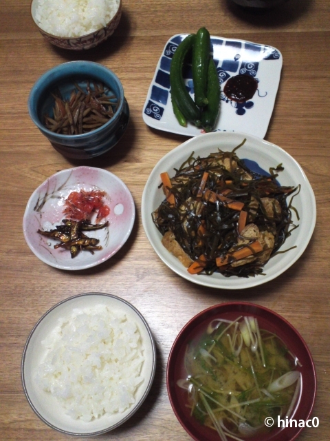 割引になっていた栃尾揚げは、味噌汁と切り昆布の煮物へ。肉系の使い方が彼らしいなぁ、としみじみ。たまねぎも入ってました。
