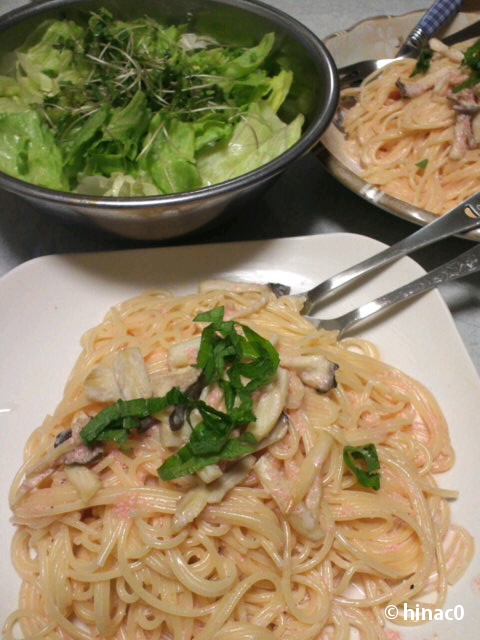 明太子がたくさんあったので彼にリクエストしておいたら、生クリーム使った本格的なやつを作ってくれていました。