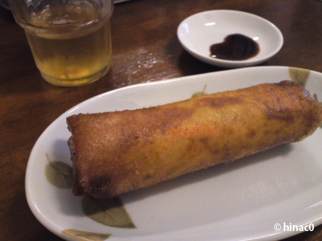 いつもは電話してから行くんですが、今日は予告ナシで突撃。席が埋まっていてあきらめかけましたがテイクアウトのお客さんだったようで、「外の椅子で待ってて~」と窓越しにママに言われました。このお店は4席しかありません。メニューもわんたんと春巻き、おつまみが数種類しかありませんが、ご近所さんや常連客に愛されているお店です。