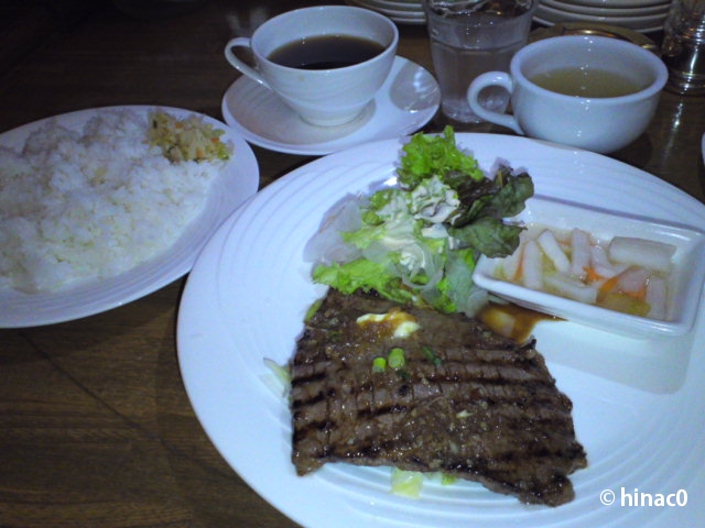 ステーキは脂っぽくなく、ほどよい柔らかさで、お肉を食べている満足感が得られます。上大岡でランチ1000円は高い気がしますが、サービスのよさや立地、味を考えると妥当かもしれません。喫煙OKというのもあるかも。ちょっと煙草くさいです。