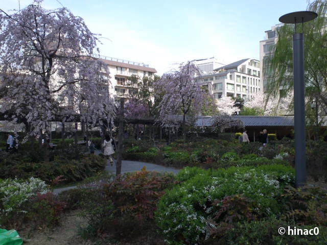 ミッドタウンのスーパーでお弁当を買って、公園でみんなでお花見しました。みんないたし桜は遠かったしで、かなりイマイチな写真に(苦笑)