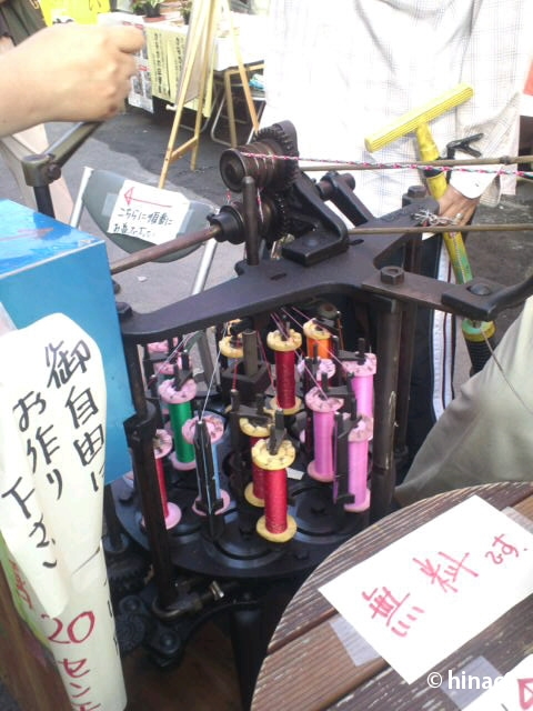 組み紐を作る体験ができるブース。糸がどんなメカニズムで絡まってるのかまでは見れなかったけど、面白い機械でした。